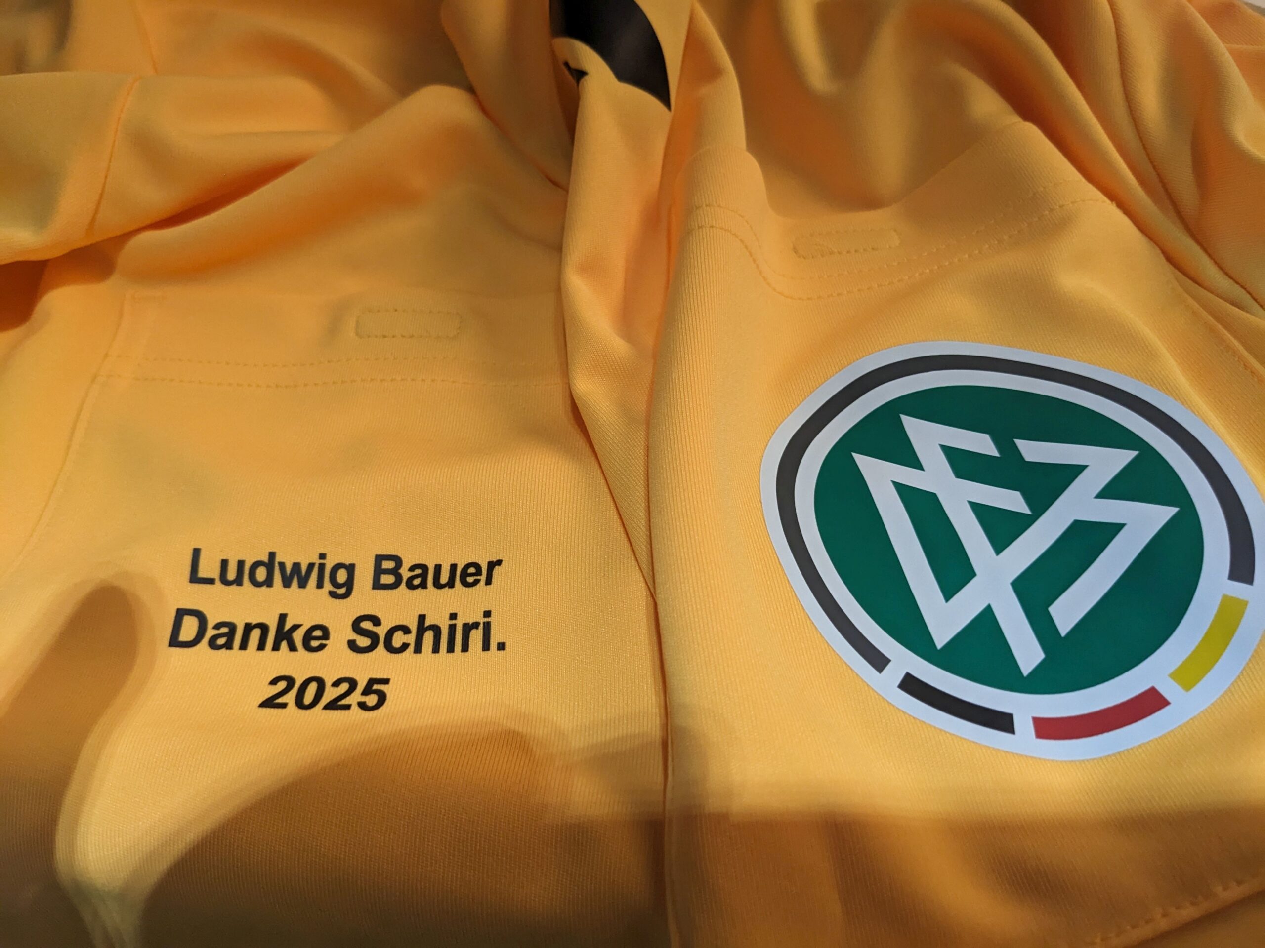Das Ehrenmitglied des 1.FC 1917 Gerolzhofen pfiff sein 4.000 Spiel als Fußballschiedsrichter. Der 76-jährige gebürtige Gerolzhöfer, der seit 52 Jahren in Gerbrunn wohnt pfeift seit 2009 für die Schiedsrichter-gruppe Würzburg. Bei Kaiserwetter im Soccerpark auf dem Würzburger Heuchelhof pfiff der Jubilar das Kreisklassenspiel der U13 Mädchen des FC Kickers Würzburg gegen die U13 des ETSV Würzburg. Vor dem Einlaufen beschenkte Ludwig Bauer beide Mannschaften. Die Jungs bekamen DFB-Anstecknadeln, während die Mädels sich über DFB-Knautschbälle erfreuten, dazu gab es neben Süßigkeiten auch DFB-Kugelschreiber und DFB-Aufkleber. Routiniert leitete Bauer sein Jubiläumsspiel. Schon vor dem Spiel wurde der Jubilar vom Reporter des BR-Fernsehen befragt und erklärte: „bei meinem 1. Spiel am 16.11.1963 habe ich mir nie träumen lassen, dass ich nach 62 Jahren einmal auf diese Zahl von Spiele kommen werde. Ich habe viele Nationalspieler pfeifen dürfen“. Er erinnert sich gerne an sein 1.000 Spiel 1995 in Kitzingen mit dem Rekordmeister FC Bayern München vor 12.000 Zuschauern, bei dem Jürgen Klinsmann sein 1. Spiel für die Bayern machte und Otto Rehhagel als Trainer debütierte und Uli Hoeneß ihm den Spielball nach dem Spiel wieder abnahm. Als Erinnerung hat Ludwig Bauer eine Originalunterschrift vom Spielführer Jürgen Klinsmann auf dem Spielberichtsbogen, den er vom Verband für sein Jubiläum geschenkt bekam. Weltmeister Klaus Augenthaler wechselte sich damals ohne Spielrecht selbst ein. Gerne erinnert er sich auch an die Weltmeister Wolfgang Overath, Paul Breitner oder Bernd Hölzenbein bei der Uwe-Seeler-Traditionself oder Nationaltorwart Andreas Köpke vom1. FC Nürnberg, der mit der neuen Rückpassregelung bei dessen Einführung Probleme hatte. Zu vielen wusste Ludwig Bauer eine kleine Geschichte.